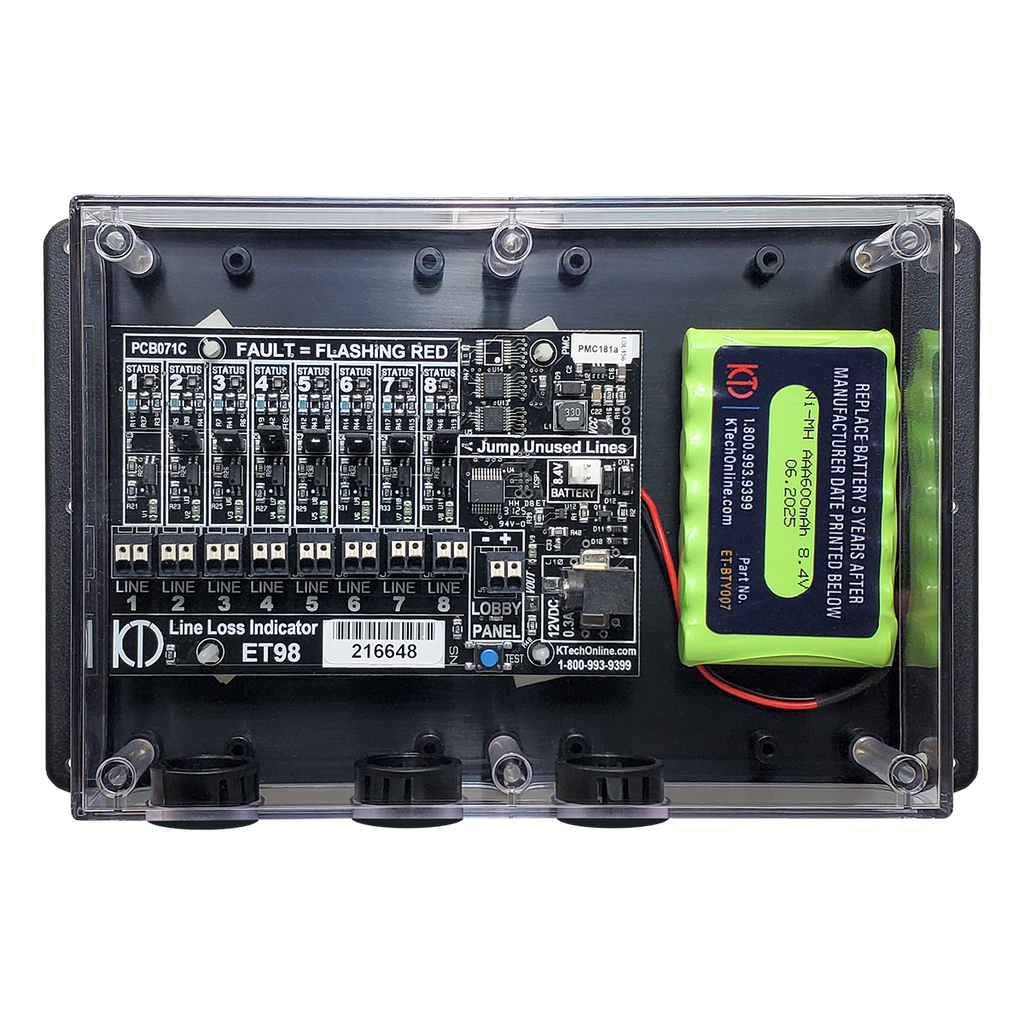 We've developed a low‐cost, simple and effective method of complying. When a phone line goes down, our 901 series emergency phones send a signal through a relay to our Line Loss Indicator which then activates an audible warning along with a warning light within our Line Loss Display Panel. Monitor up to 8 phone lines, each with their own LED indicator.